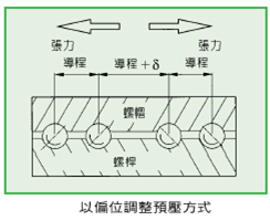 2.導程偏移預壓方式:(加大節距或縮小節距)