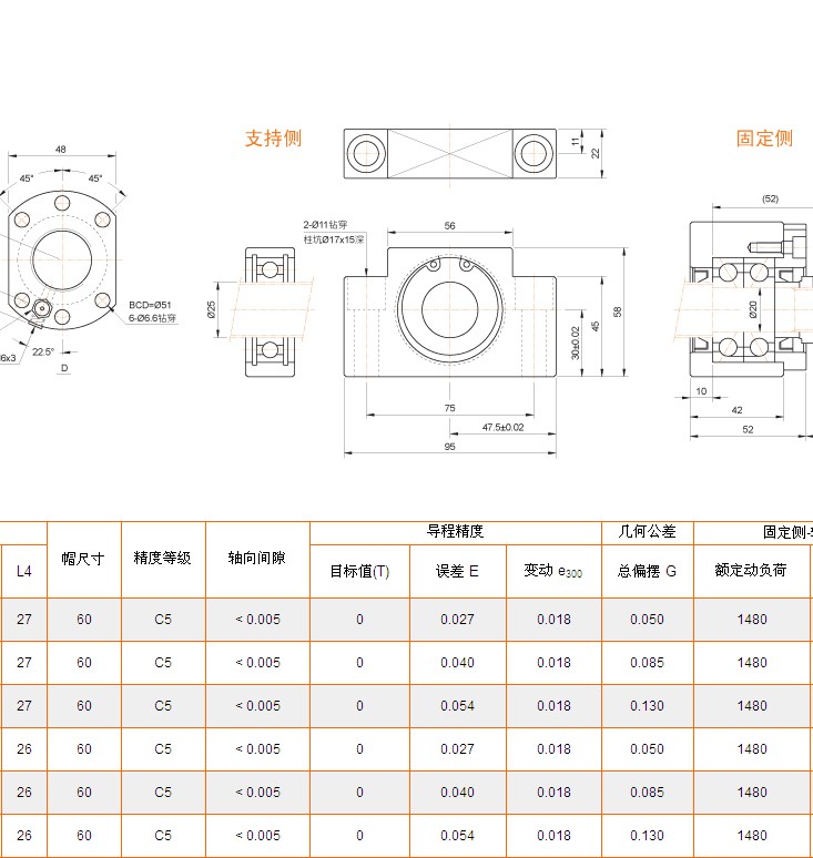 滾珠絲杠軸承為適應各種用途,提供了標準化種類繁多的產品。廣泛應用于機床,滾珠的循環方式有循環導管式、循環器式、端蓋式。預壓方式有定位預壓(雙螺母方式、位預壓方式)、定壓預壓。可根據用途選擇適當類型。絲桿有高精度研磨加工的精密滾珠絲杠(精度分為從CO-C7的6個等級)和經高精度冷軋加工成型的冷軋滾珠絲杠軸承(精度分為從C7-C10的3個等級)。另外,為應付用戶急需交貨的情況,還有已對軸端部進行了加工的成品,可自由對軸端部進行追加工的半成品及冷軋滾珠絲杠軸承。作為此軸承的周邊零部件,在使用所必要的絲杠支撐單元、螺母支座、鎖緊螺母等也已被標準化了,可供用戶選擇使用。