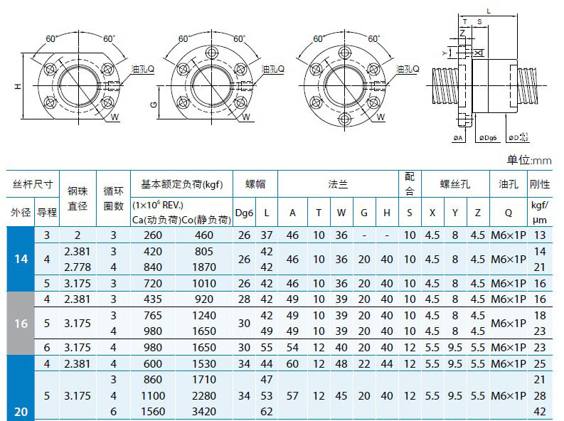 滾珠絲杠主要參數為:公稱直徑與導程。